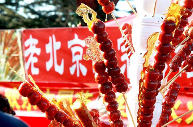 老北京的糖葫蘆特別養眼,個頭大、各式各樣、色彩紛呈,一口咬下去,滿口甘甜。不論是炎炎夏日,還是寒冷冬季,都給人一種清新之感,回味起來,欲罷不能。