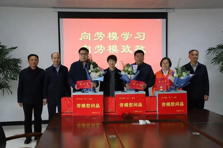 在五一國際勞動節(jié)到來之際,芮城縣委副書記楊春霞、縣總工會黨組書記、常務(wù)副主席張亞波到大禹生物,慰問山西省五一勞動獎?wù)芦@得者、運城市勞動模范、大禹生物黨支部書記、董事長閆和平;全國五一勞動獎?wù)芦@得者、山西省勞動模范、大禹生物總經(jīng)理閆凌鵬;并為今年剛剛榮獲“運城市勞動模范”榮譽稱號的大禹生物質(zhì)保部經(jīng)理黨亞朋授獎。