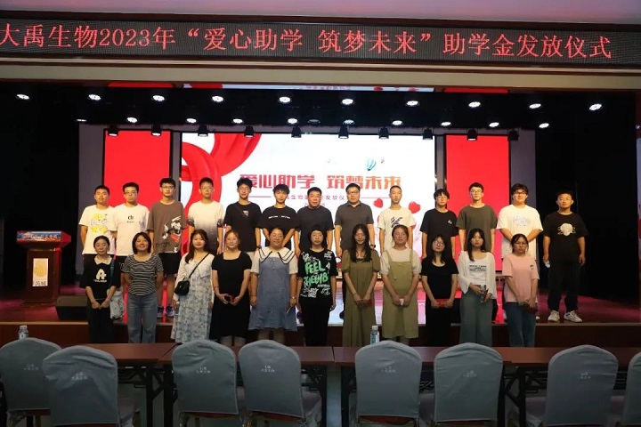 8月18日,大禹生物為今年考上高等學府的30名職工子女發(fā)放助學金。