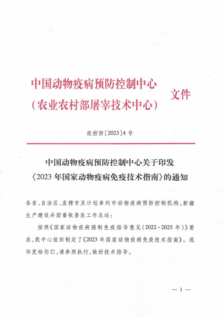 中國動物疫病預防控制中心:《2023年國家動物疫病免疫技術指南》