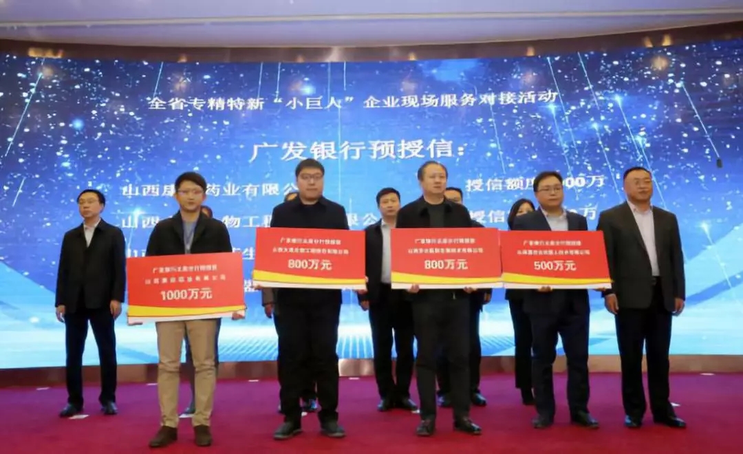 活動上,山西省小企業發展促進局倡議成立了“山西省專精特新企業金融服務聯盟”,廣發銀行太原分行為大禹生物等4家企業預授信。