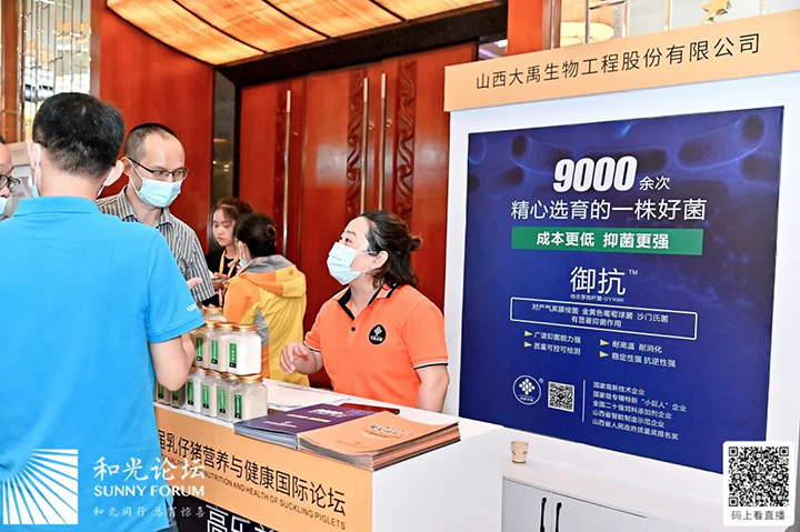 大禹生物作為本次論壇的參展企業,重點展出了御抗、高樂美、葡萄糖氧化酶等產品。尤其是歷經9000余次精心選育的一株好菌---御抗首次在行業會議亮相,以其強大的抑菌能力、耐溫耐消化、可檢可測和穩定性、抗逆性強等特點受到行業關注。現場更有專業人員對產品的功能、特點、成分、優勢進行詳細的講解,前來咨詢、洽談的客戶絡繹不絕!